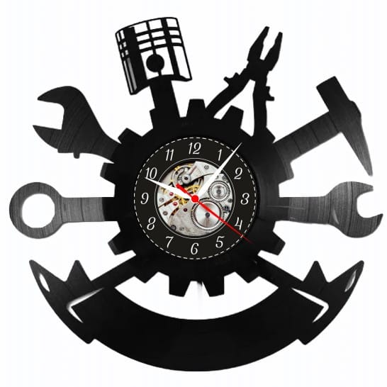Aduceți atmosfera autentică a atelierului mecanic în spațiul dumneavoastră cu acest ceas de perete extraordinar. Este mai mult decât un accesoriu – este o declarație de pasiune pentru meșteșug și inginerie, îmbinând perfect nostalgia vinilului cu robustețea uneltelor mecanice.