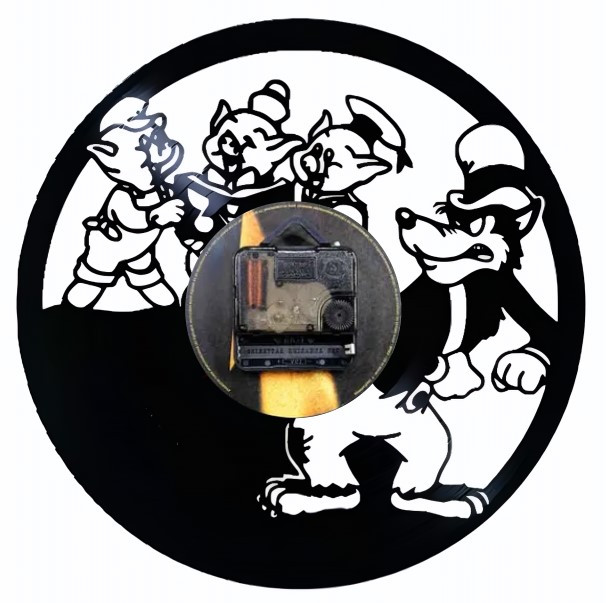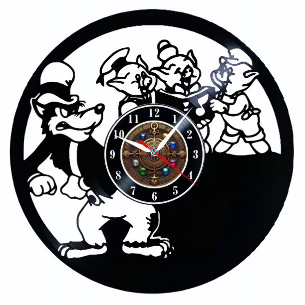 Descoperiți farmecul poveștii Cei Trei Purceluși într-o formă cu totul unică! Acest ceas de perete realizat manual dintr-un disc de vinil aduce un strop de magie în orice încăpere. Designul său inspirat din povestea clasică evocă amintiri plăcute și adaugă o notă de creativitate și personalitate decorului dumneavoastră.