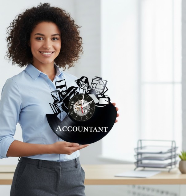 Ceas de perete cu tematică contabilitate – cadou personalizat pentru profesioniști din domeniul financiar