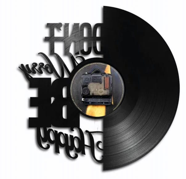 Transformă-ți spațiul într-un colț de optimism și nostalgie cu acest ceas de perete unic, realizat manual dintr-un disc de vinil autentic. Mesajul iconic „Don’t Worry Be Happy” îți va aduce zâmbetul pe buze de fiecare dată când verifici ora.