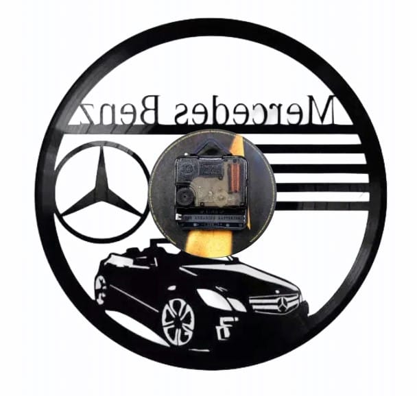 Descoperiți o piesă unică de design interior care îmbină pasiunea pentru automobilele Mercedes-Benz cu nostalgia muzicii vintage – un ceas de perete spectaculos, creat manual dintr-un disc de vinil autentic