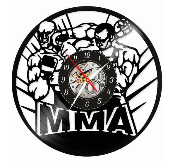 Descoperă fusionarea perfectă a pasiunii pentru artele marțiale mixte și a esteticului retro intr-un ceas de perete unic, realizat dintr-un disc de vinil lucrat manual!