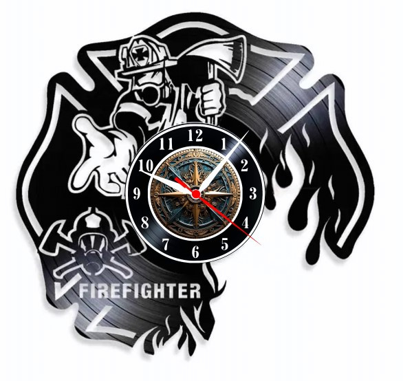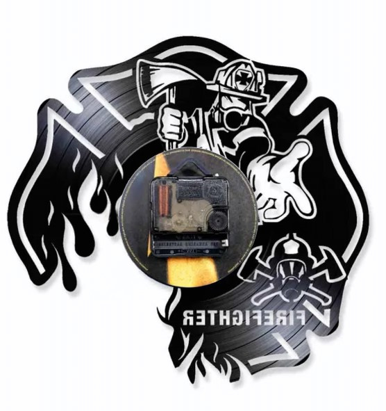 Transformăm nostalgia muzicii în artă funcțională cu acest ceas de perete unic, realizat manual dintr-un disc de vinil vintage, dedicat curajoșilor pompieri. Fiecare element al design-ului spune povestea acestei nobile profesii.