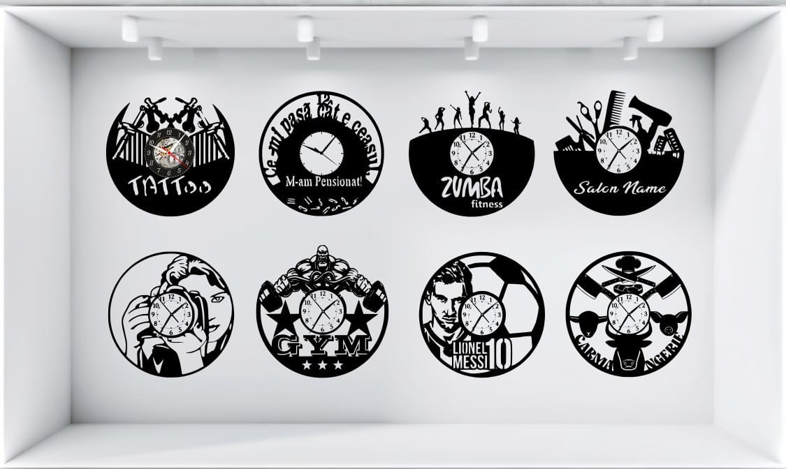 Toate ceasurile sunt realizate din discuri de vinil reciclate de 12 inchi (30 cm). Mărimea reală după tăiere va varia în funcție de formă.