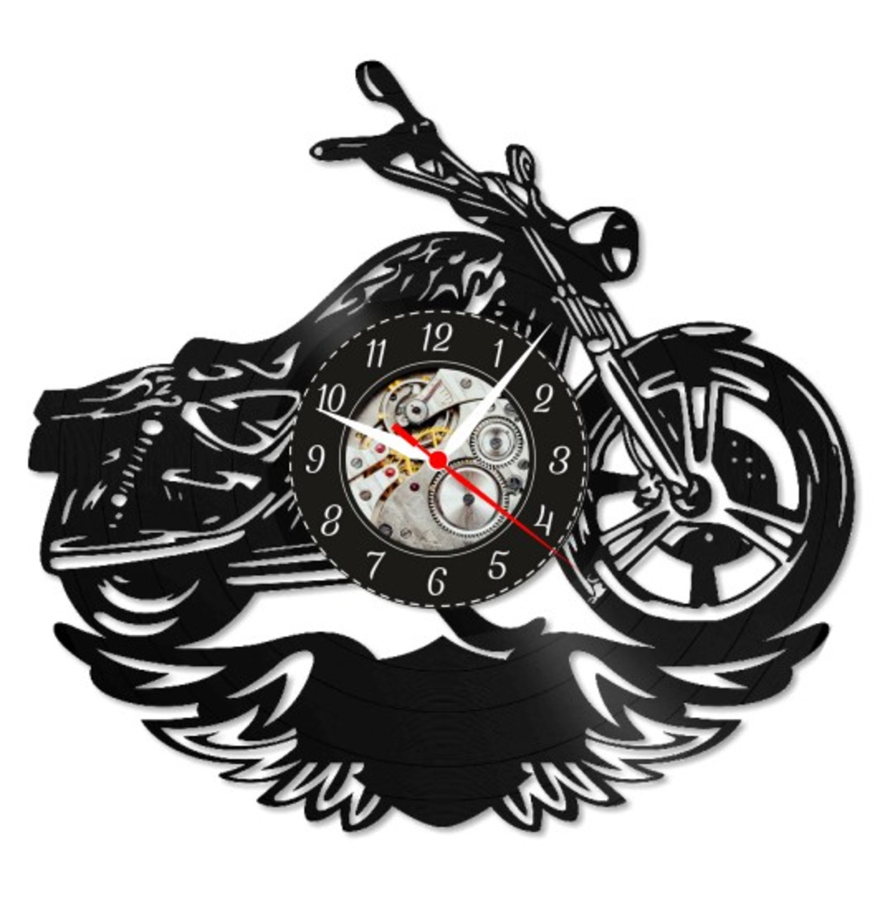 Ceas de Perete Artistic – Design Motocicletă cu Aripi din Vinil Vintage