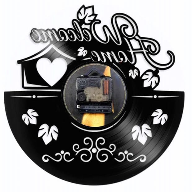 Redescoperiți farmecul vintage și căldura căminului cu ceasul nostru de perete unic „WELCOME HOME”, o creație artizanală ce îmbină nostalgia muzicii cu funcționalitatea modernă.